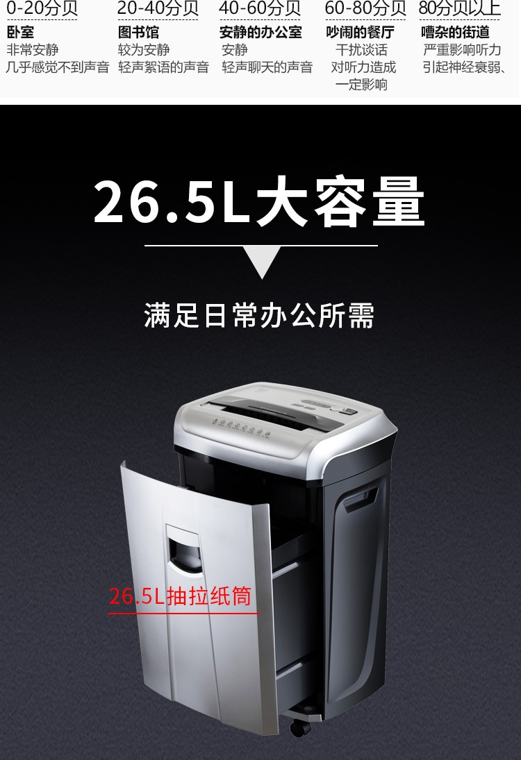 | 3 | 碎纸桶容量 | 26.5L |