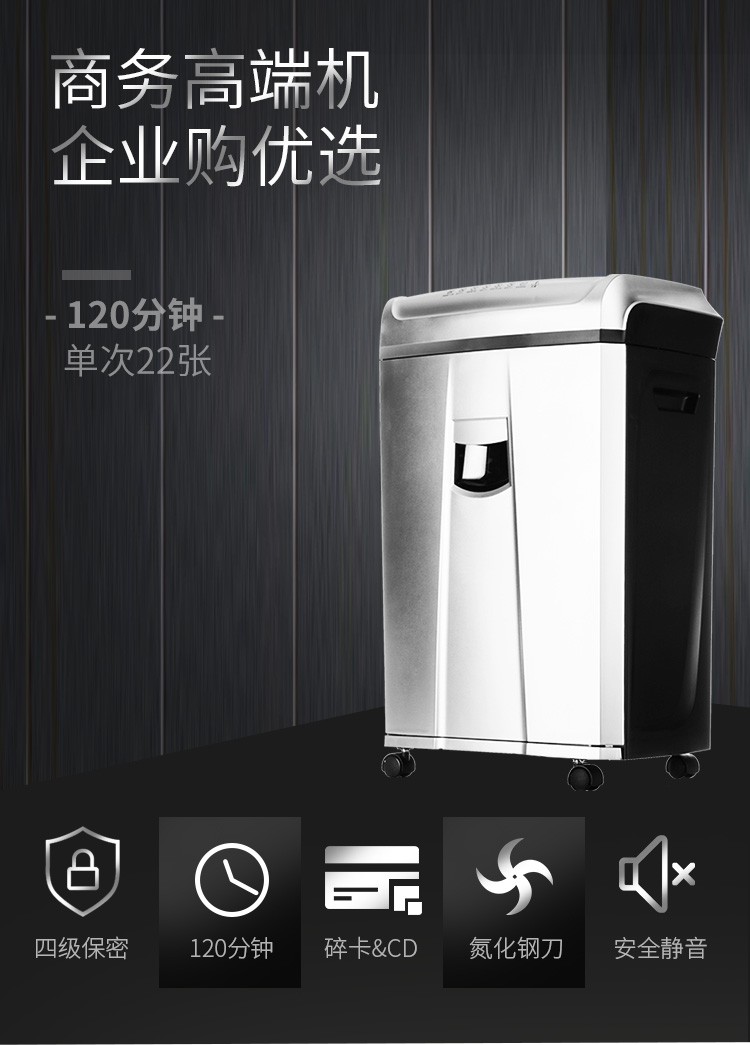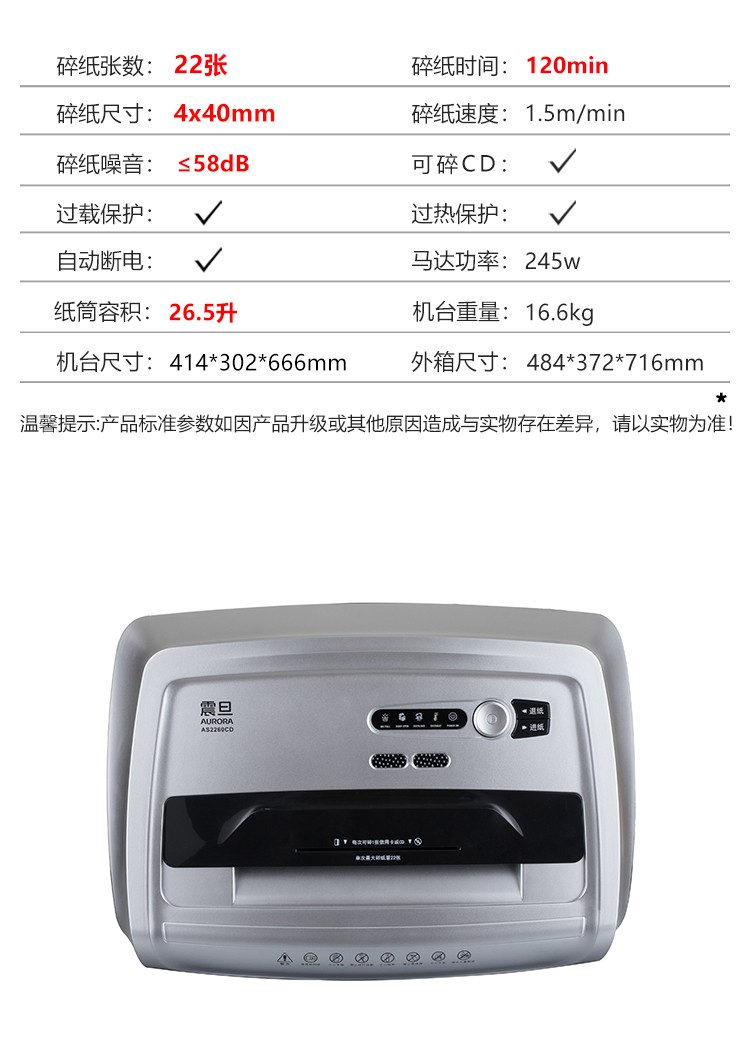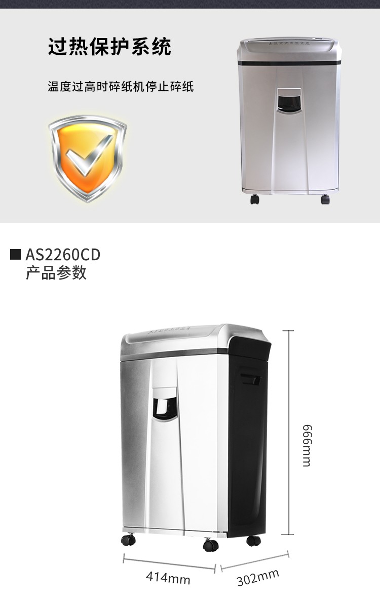 震旦AURORA 4级保密办公商用碎纸机(单次22张 持续120分钟 26.5L 可碎卡、光盘) AS2260CD