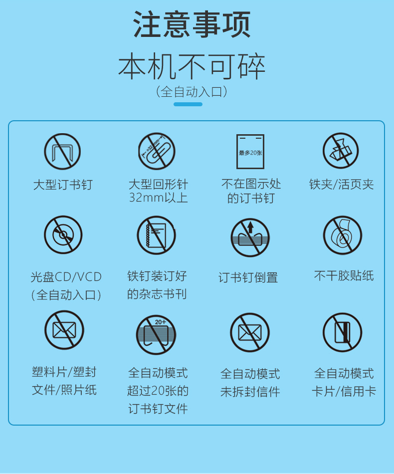 | 8 | 可碎产品 | 纸,光盘,卡,文件袋,订书针,回形针 |