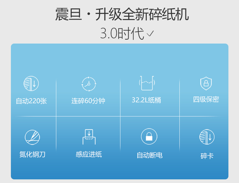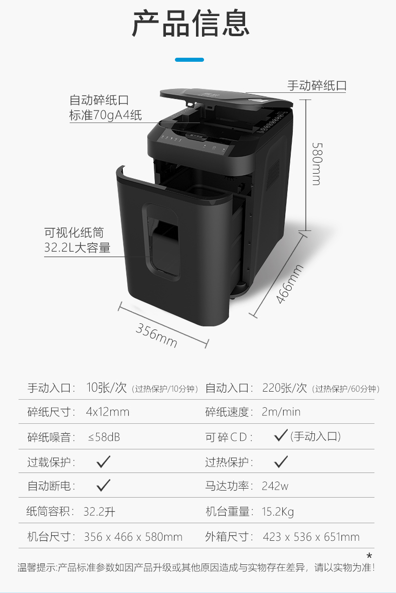 | 4 | 碎纸能力 | 手动10,自动220张 |
