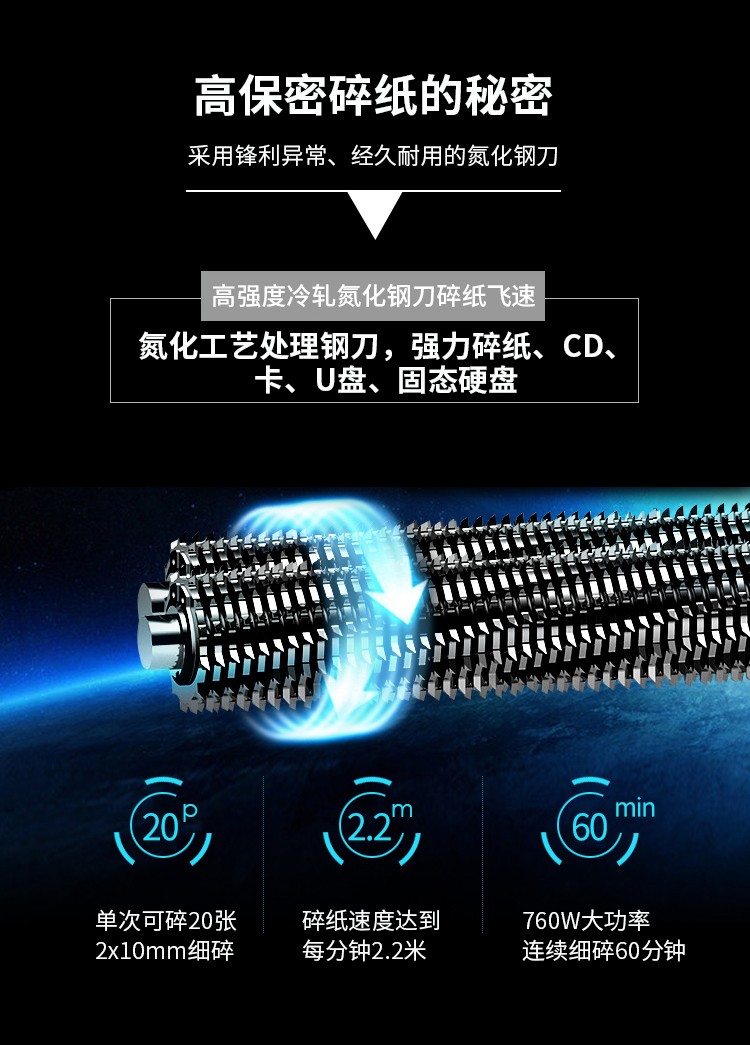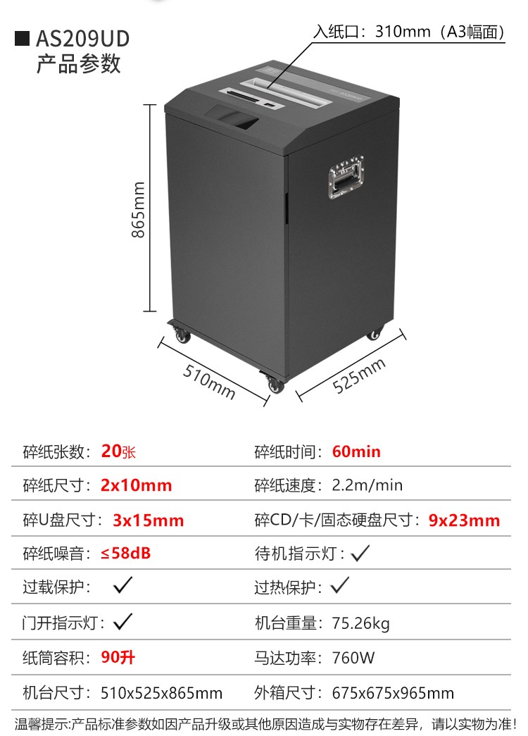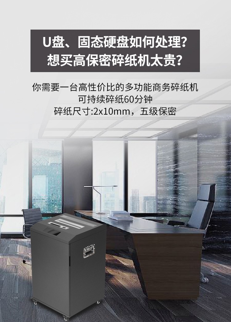 | 5 | 碎纸效果 | 2×10(A3幅面入口),粉碎介质效果:3×15(U盘),9×23(CD、信用卡、固态硬盘) |