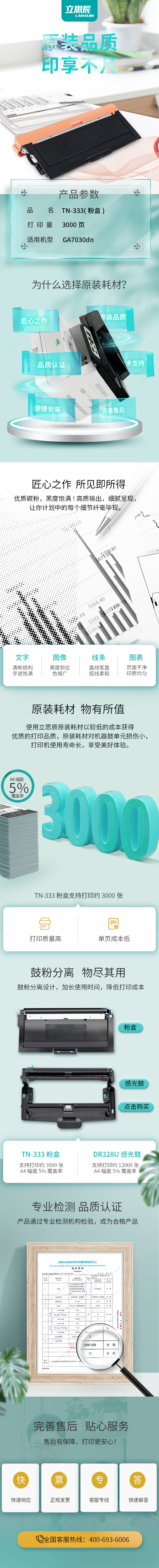 立思辰(LANXUM)立思辰原装耗材TN-333原装黑色墨粉页产量3000页适用GA7030dn